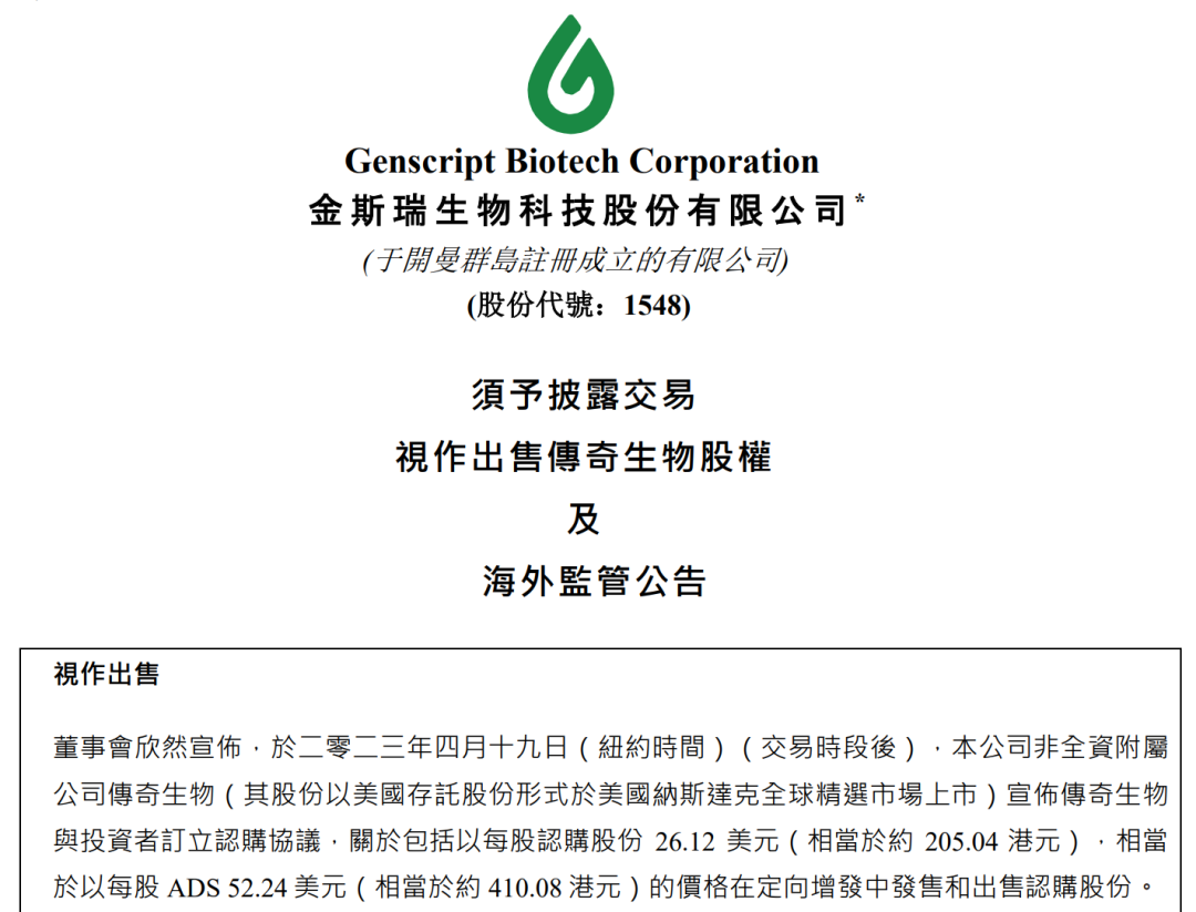 [3] 传奇生物公司公告