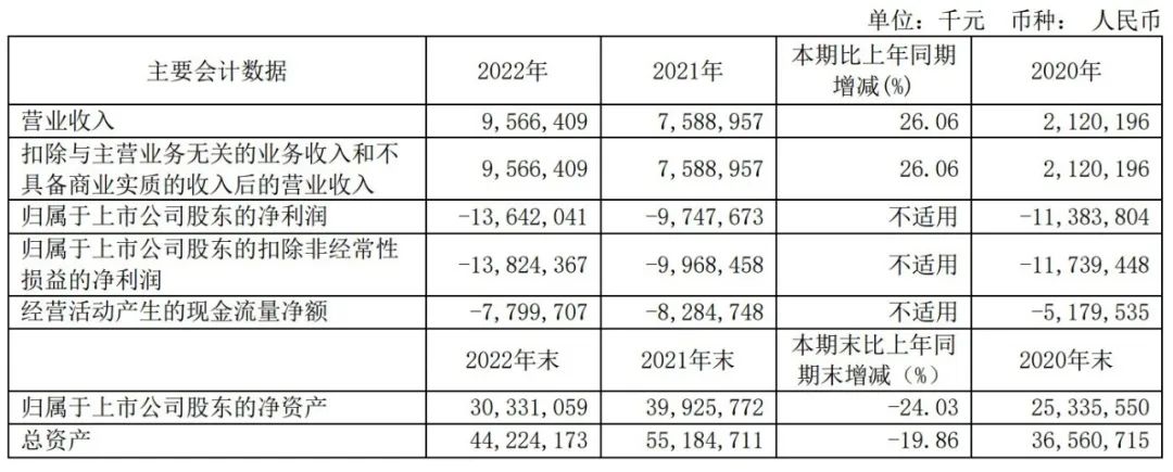 4月25日晚间,百济神州2022年报发布,公司实现营收95.66亿元,同比增长26.06%;净亏损136.42亿元;研发费用支出111.52亿元,同比增长16.92%,占营收的比例为116.58%。