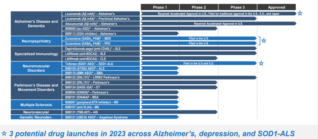 基于这些问题,公司正在调整管线,在一季度电话会议上表示Biogen计划取消三项临床试验(1款药物处于临床三期,2款药物处于临床2期),并降低临床前基因治疗和眼科项目的优先级。