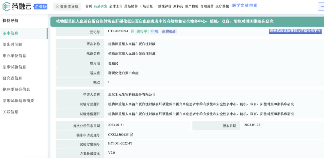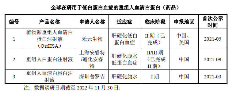 全球在研用于低白蛋白血症的重组人血清白蛋白盘点