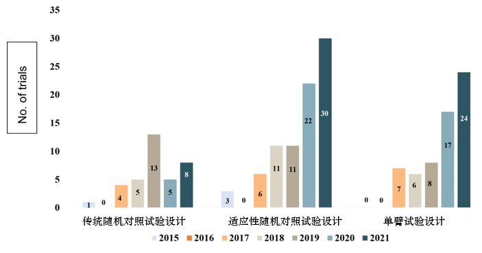 图1 2015年至2021年期间中国获批抗肿瘤药物临床试验设计的变化