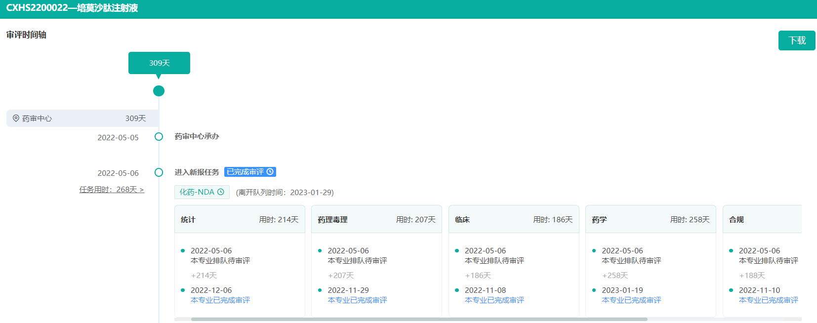 培莫沙肽注射液审评时间轴(部分,完整内容请登录“药融云数据库www.pharnexcloud.com/?mh”查看)