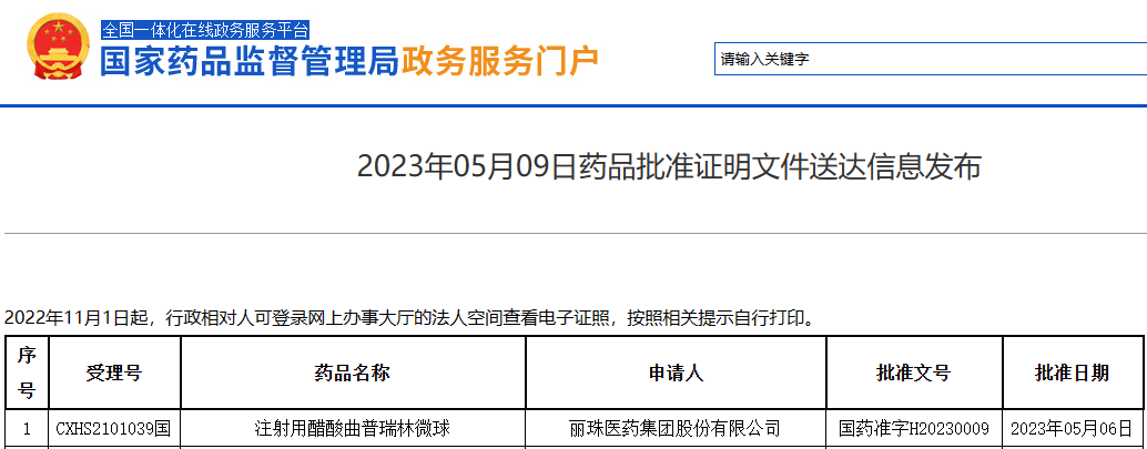一、国内首款!丽珠集团拿下14亿品种微球制剂