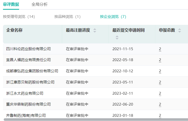 经药融云数据库查询显示,截止目前国内已有2家药企过评富马酸伏诺拉生片:山东新时代药业于2022年7月顺利斩获“国内首仿+首家过评”;扬子江药业子公司四川海汇药业于今年3月第二家获批。另外,还有科伦药业、人福药业、康弘药业、康恩贝制药、永太药业、重庆华森制药和齐鲁制药7家药企以仿制4类申报的富马酸伏诺拉生片上市申请正在审评审批中。