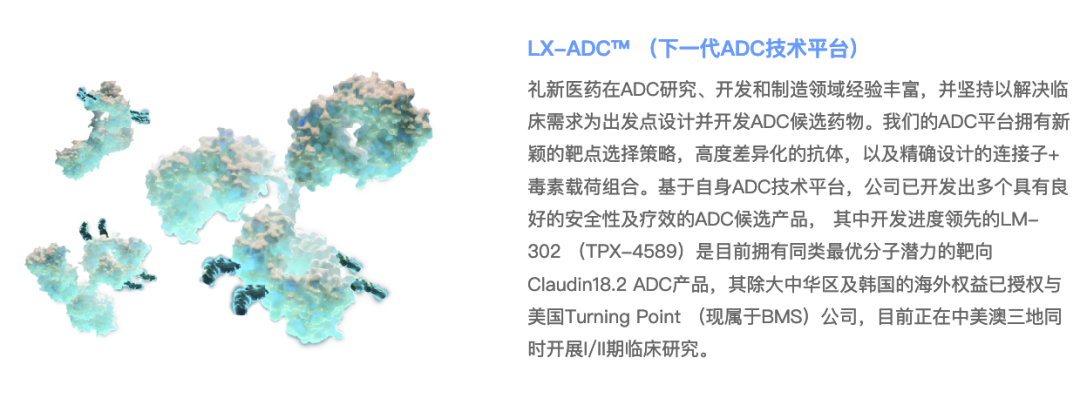 目前礼新医药已建立了以CCR8、GPRC5D、Claudin 18.2及SIRPα为核心靶点的4个临床及多个临床前的、拥有自主知识产权并具有全球竞争力的差异化创新药管线,其中2个新药已进入临床II期,2个新药处于临床I期。值得一提的是,2款ADC药物都与跨国大药企达成了权益转让协议。