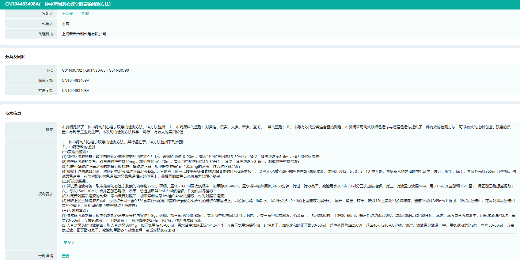 心速宁胶囊专利信息查询(部分,完整内容请登录“药融云数据库www.pharnexcloud.com/?mh”查看)