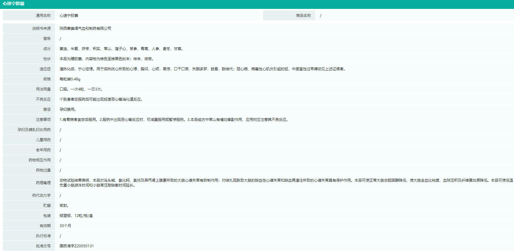 心速宁胶囊—药品说明书信息查询