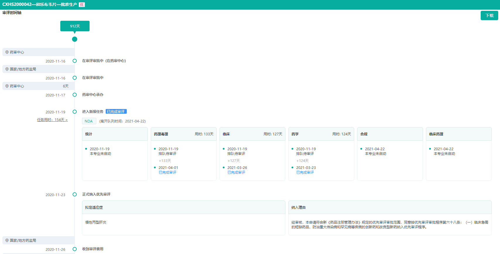 奥磷布韦片审评时间轴—获批上市耗时912天