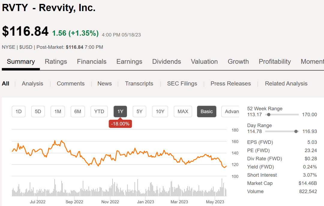 受此消息影响,Revvity的股价在周四上涨1.35%,至116.84美元。目前,Revvity总市值114.6亿美元。