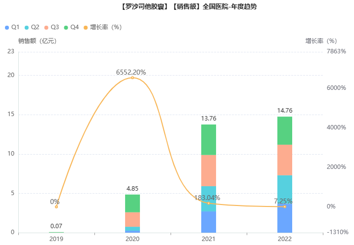 2019年,罗沙司他获批新适应症,用于治疗未接受透析慢性肾病患者的贫血,大大拓宽了罗沙司他的适用人群。据药融云数据库,2019年底,罗沙司他通过谈判顺利被纳入医保目录(乙类),后市场空间随之飞涨,2022年的院内销售额已逼近15亿元。据报道,罗沙司他是中国CKD相关贫血市场份额排名第一的品牌。
