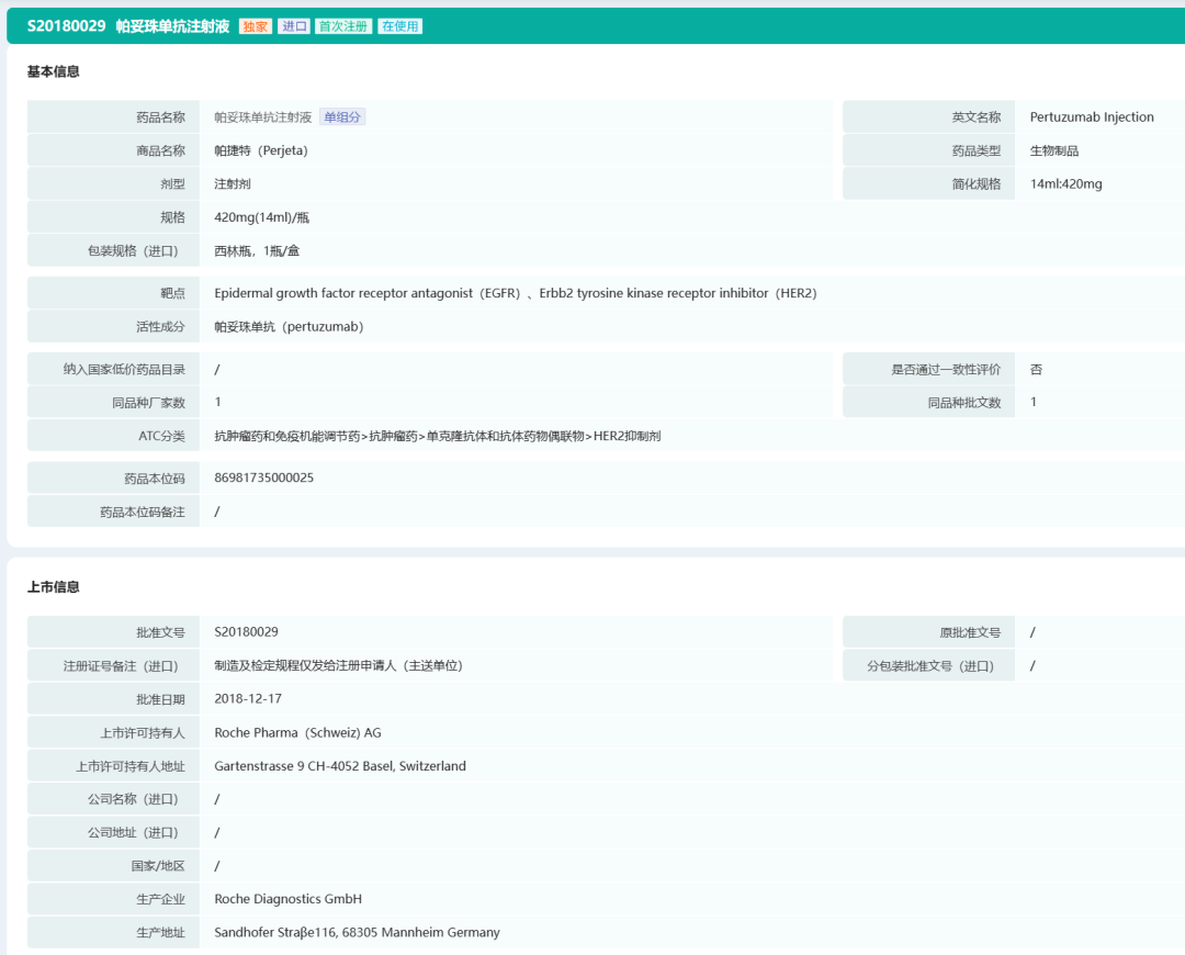 罗氏帕妥珠单抗基本信息