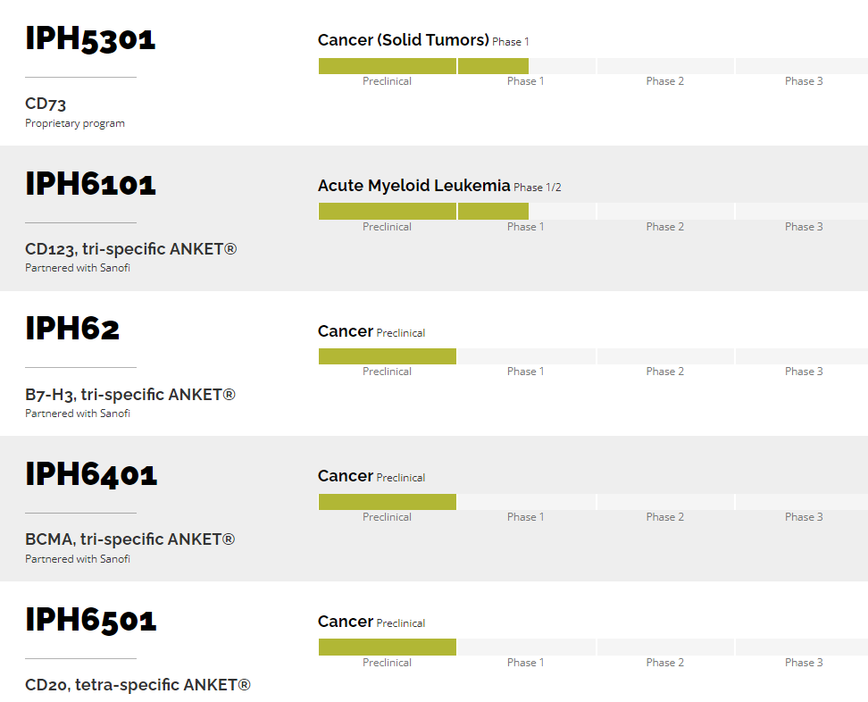 Innate是一家全球性的临床阶段生物技术公司,旨在通过治疗性抗体及其ANKET专有平台来利用先天免疫系统治疗癌症。Innate基于ANKET平台的管线主要包括IPH6101(SAR443579),IPH62,IPH6401(SAR445514)和IPH6501。