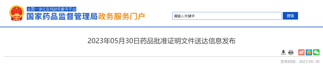 2023年05月30日,NMPA发布药品批准证明文件送达信息,本批次共有101个受理号获批,其中7个为一致性评价受理号,包括: