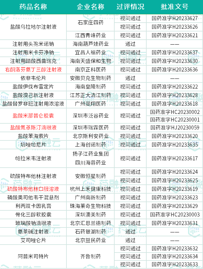其中,盐酸乌拉地尔注射液迎来石家庄四药、江西青峰药业等2家企业同日通过一致性评价;右酮洛芬氨丁三醇注射液、盐酸米那普仑胶囊、盐酸氮䓬斯汀滴眼液、硫酸特布他林口服溶液迎来首家过评。