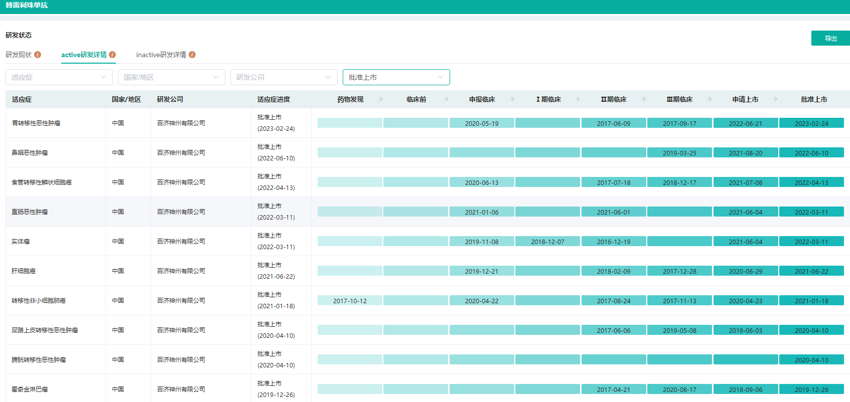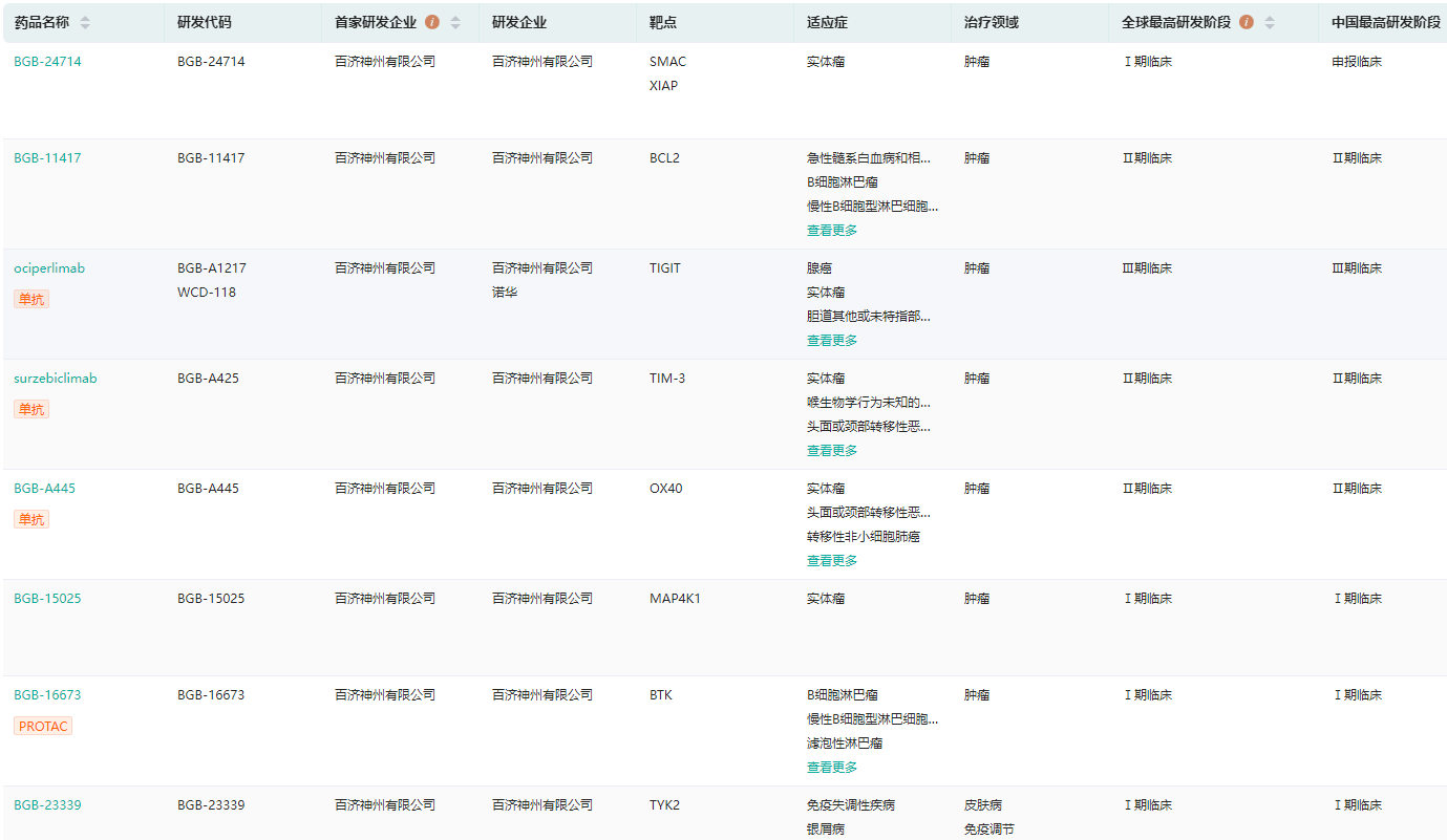 百济神州在研管线查询(部分,完整内容请登录“药融云数据库www.pharnexcloud.com/?mh”查看)
