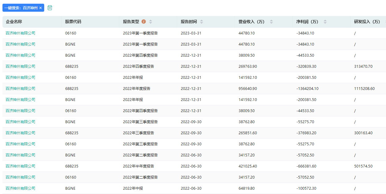 百济神州季度报告/年报信息查询