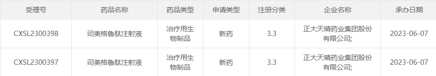 此外,除了本次申报临床的正大天晴药业外,还有惠升生物、江苏万邦生化、北京质肽生物、重庆宸安生物等药企递交了司美格鲁肽生物类似药的临床申请,齐鲁制药、石药集团中奇制药递交了化药司美格鲁肽注射液的临床申请,部分药企已获临床默示许可。