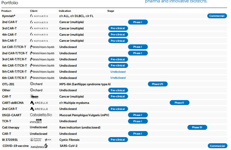 Oxford BiomedicaCDMO合作管线