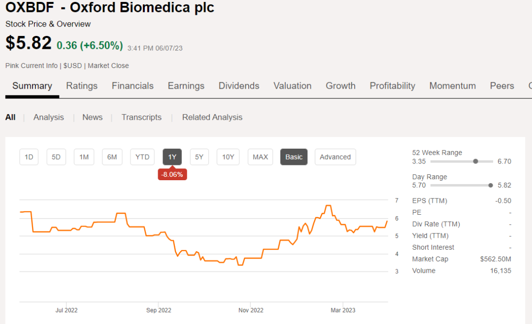 自从2022年Oxford Biomedica股价在大跌50%之后,正在缓步回升,目前市值5.63亿英镑。