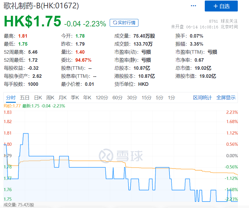 目前歌礼制药的总市值19.02亿,处于亏损状态。短短几年时间,歌礼制药已经从14元的发行价,到下滑至此,创新药的战场愈发激烈。