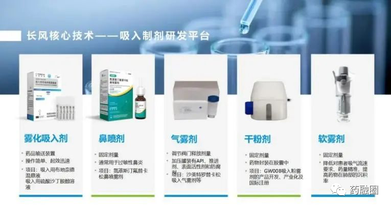 目前,长风药业旗下在研产品线涵盖了呼吸系统主要疾病的治疗,涉及变应性鼻炎、哮喘、慢性阻塞性肺病等多个临床需求大的治疗领域,同时拥有鼻喷雾剂、定量吸入气雾剂、干粉吸入剂、雾化吸入剂、软雾剂等重要吸入制剂的研发生产平台。