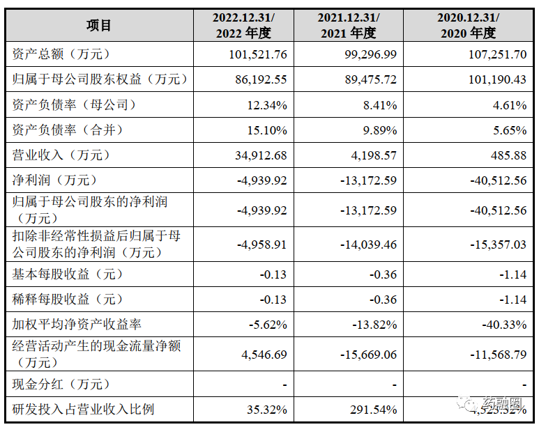 招股书显示,长风药业2020年、2021年、2022年营收分别为485.88万元、4198.57万元、3.49亿元;净亏损分别为4.05亿元、1.32亿元、4939.9万元;扣非后净亏损分别为1.54亿元、1.4亿元、4958.9万元。