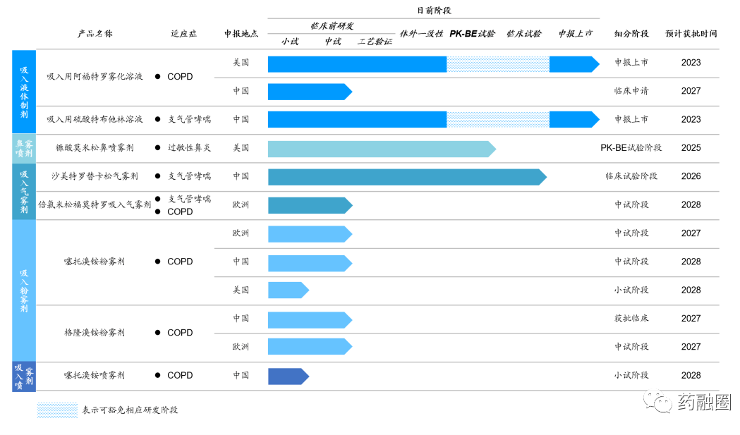 截至招股说明书签署日,公司计划国内申报的主要在研产品中,沙美特罗替卡松吸入气雾剂、噻托溴铵吸入粉雾剂、格隆溴铵吸入粉雾剂等产品应进行人体生物等效性研究(1)药代动力学研究(PK-BE研究),和(2)药效动力学研究(PD-BE研究)或随机对照临床试验。