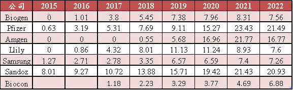注意:biogen和三星的销售额部分是重复的,因为此前三星委托biogen销售。