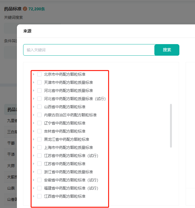 7.【药品标准数据库】新增中药配方颗粒的各省市标准。