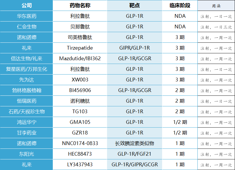 图:国内部分在研减重药物