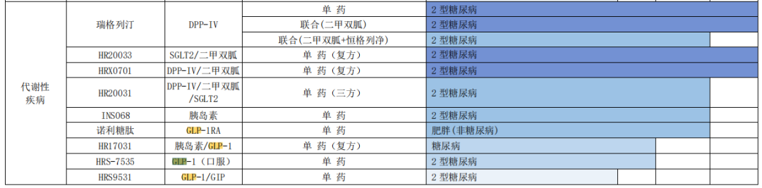 恒瑞医药在糖尿病领域布局多年,已有创新药恒格列净获批上市。降糖药开发成减肥药,GLP-1减肥药大战正酣。恒瑞管线中GLP-1类产品颇为丰富,公司在2022年报中也有展示。恒瑞还在继续开发新品,据药融云数据库,2023年5月5日,恒瑞医药1类新药HRS9531注射液已获批临床,用于减重。