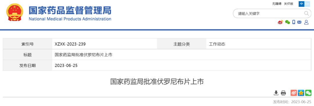 6月25日下午,NMPA发布通知,批准轩竹(北京)医药科技有限公司申报的1类创新药安奈拉唑钠肠溶片(商品名:安久卫)、贝达药业股份有限公司申报的1类创新药伏罗尼布片(商品名:伏美纳)上市。备注:伏罗尼布片在6月8日已经发布。