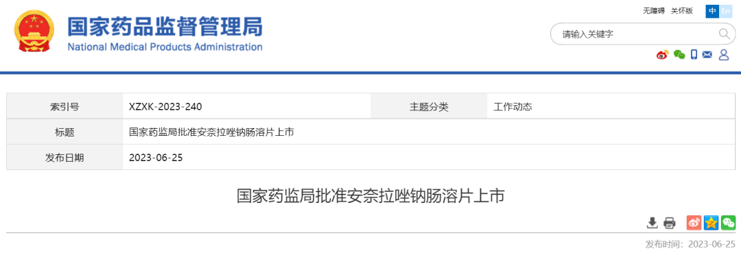 近日,国家药品监督管理局批准轩竹(北京)医药科技有限公司申报的1类创新药安奈拉唑钠肠溶片(商品名:安久卫)上市。该药为我国自主研发并拥有自主知识产权的创新药,适用于治疗十二指肠溃疡。
