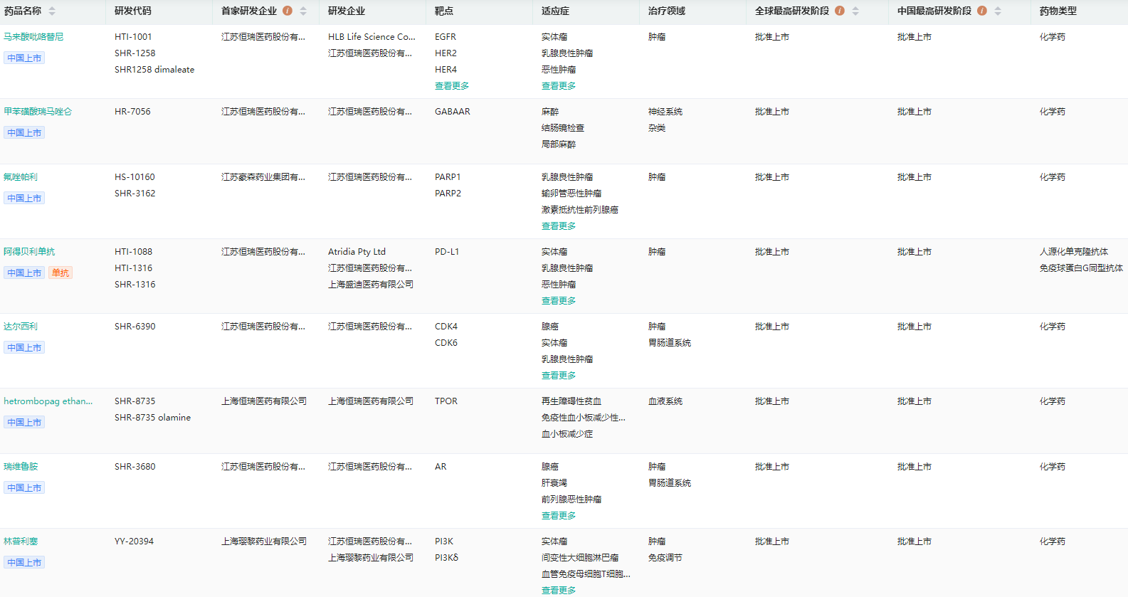 恒瑞医药上市创新药查询