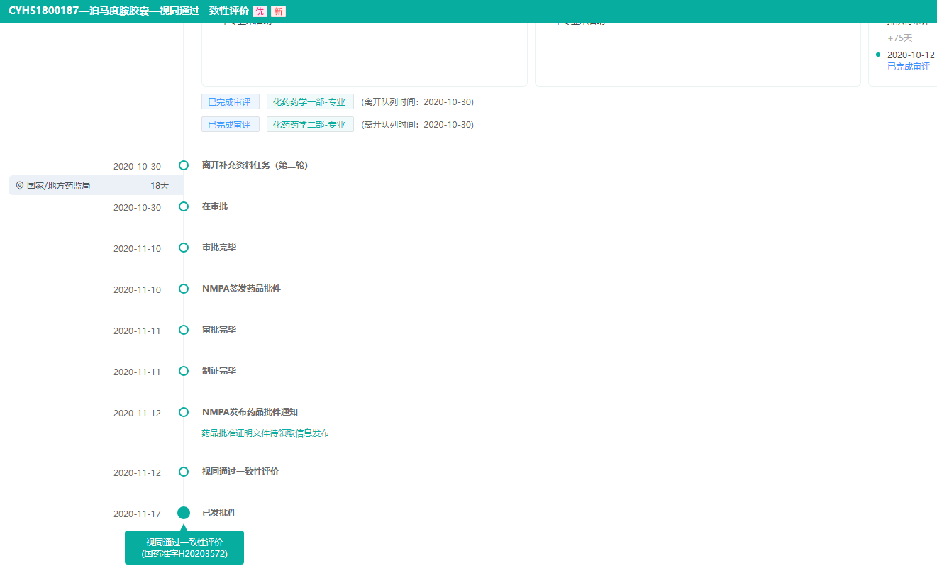 泊马度胺胶囊首家过评-审评时间轴