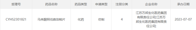 据CDE官网最新公示,江苏万邦生化递交的马来酸阿伐曲泊帕片上市申请获受理。至此,已有至少9家药企加入该品种的首仿争夺战。