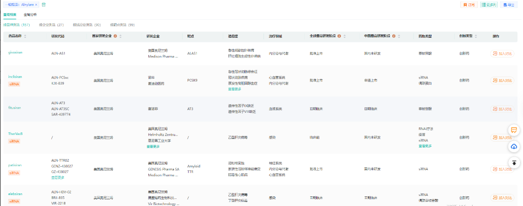 Alnylam药物研发管线查询
