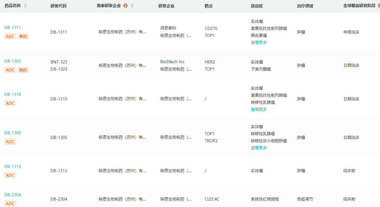 映恩生物ADC管线查询