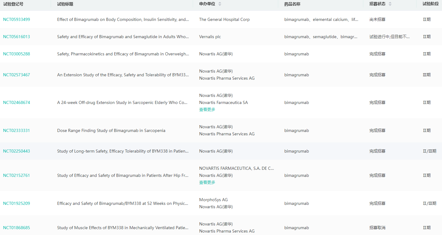 Bimagrumab全球临床试验信息查询