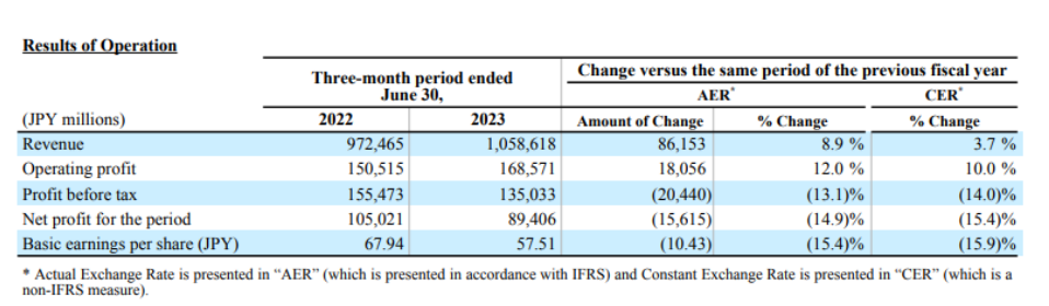 武田2023Q1总收入为1.059万亿日元(约为75亿美元,按最新汇率1 日元 ≈ 0.0071 美元计算),同比增长8.9%。这主要归功于日元疲软以及除肿瘤学以外的关键业务领域的增长。
