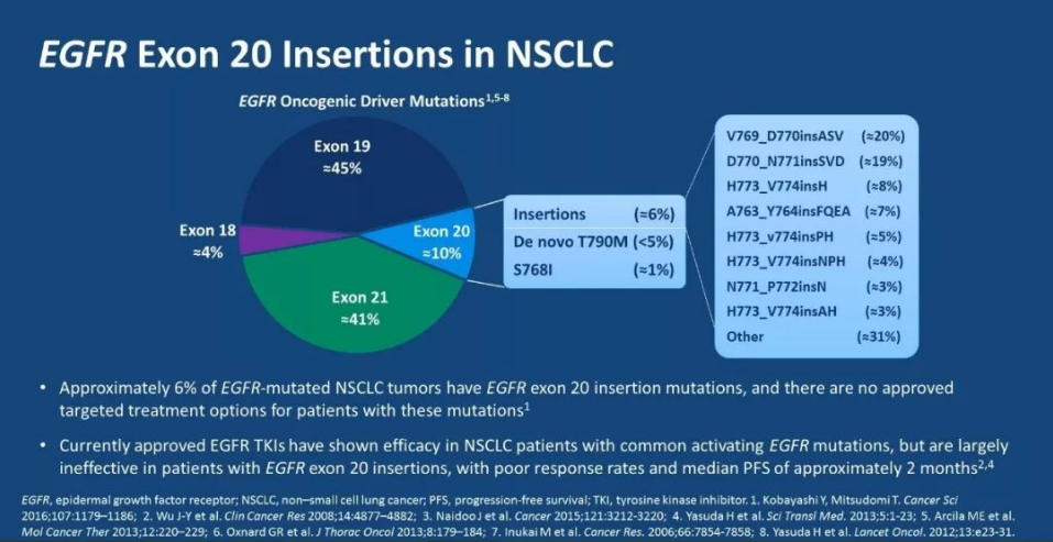 此前,强生宣布其Rybrevant已经成功地延缓了一线NSCLC患者的癌症进展。两种药物均利用单组试验的肿瘤缩小数据,于2021年获得FDA加速批准,用于有EGFR外显子20插入突变的NSCLC的二线治疗。