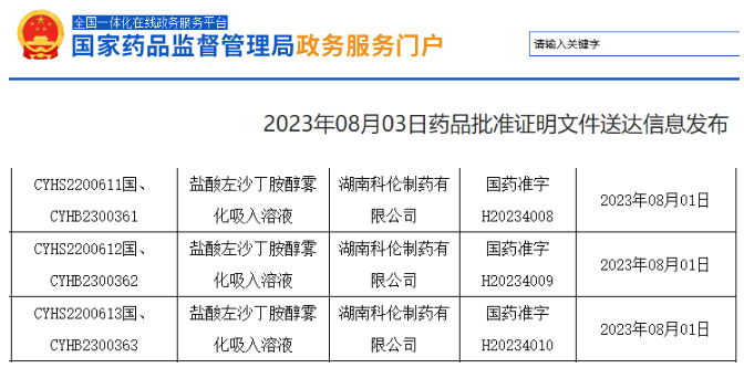 8月3日,NMPA发布新一批药品批准证明文件送达信息,其中,湖南科伦的盐酸左沙丁胺醇雾化吸入溶液获批上市。不久前,科伦才获批吸入用复方异丙托溴铵溶液,至此,科伦药业共有4款吸入剂产品。此外,还有富马酸福莫特罗吸入溶液上市在审中。