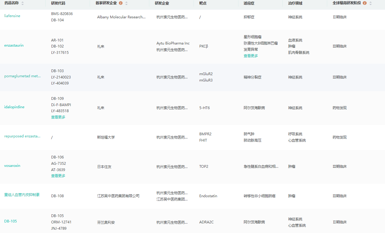 截图来源:药融云全球药物研发数据库