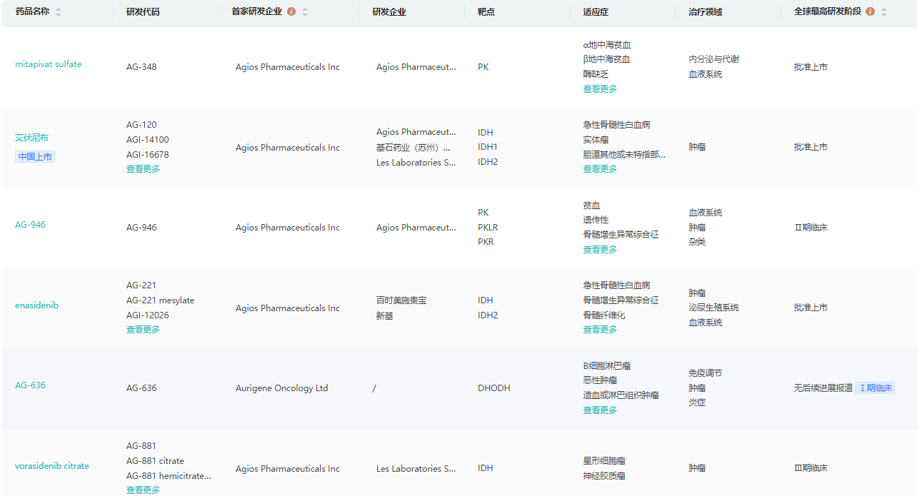 Agios研发管线(部分)