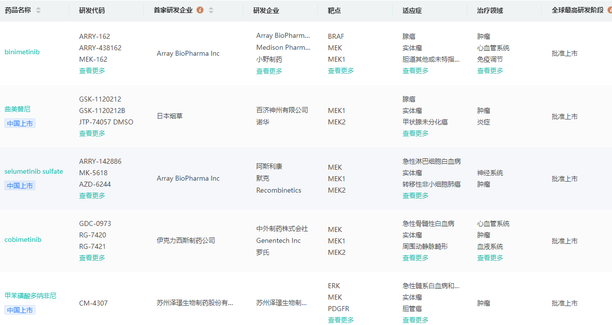 全球获批上市的MEK抑制剂