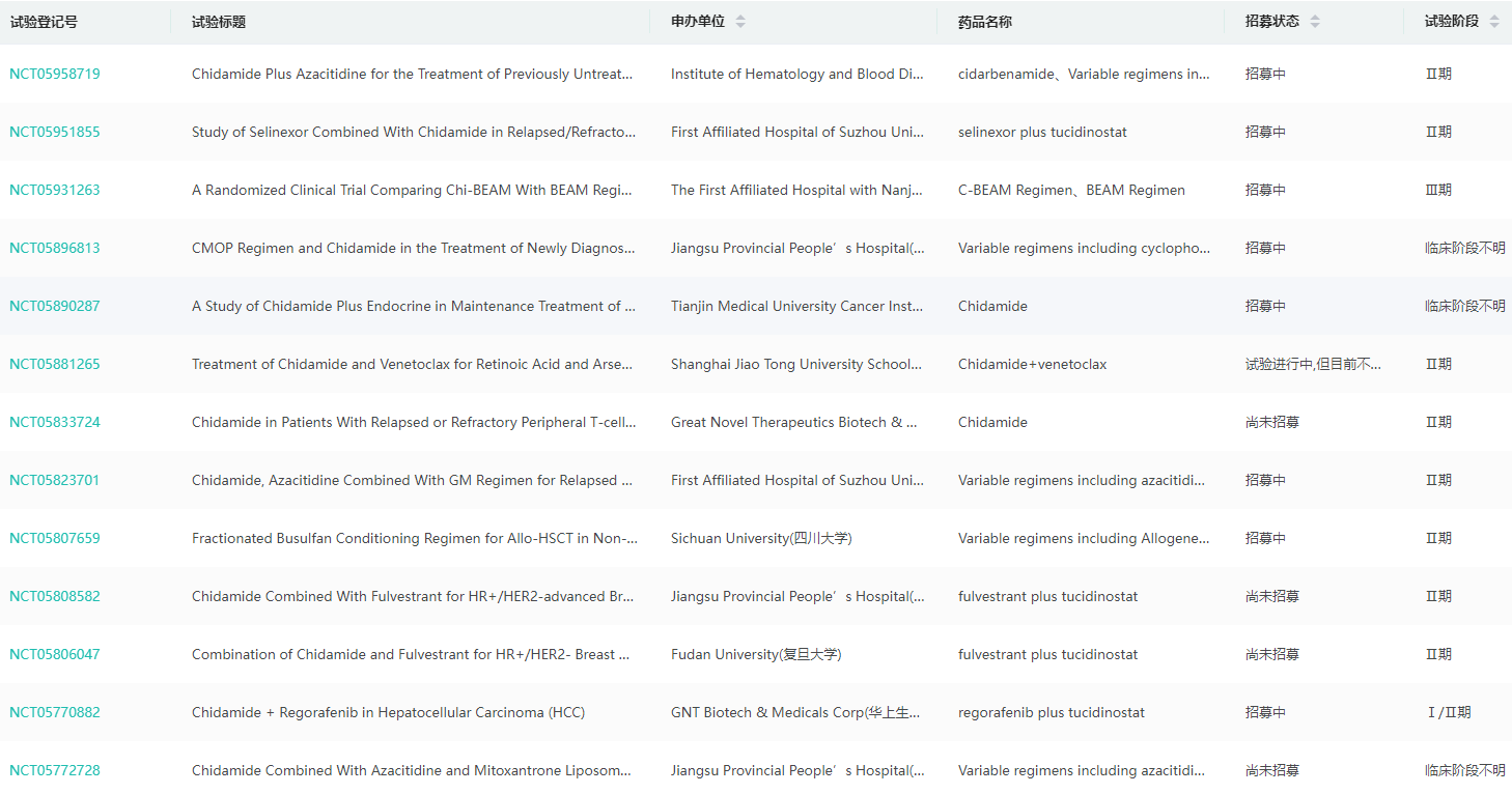 西达本胺全球临床试验查询