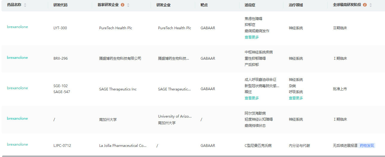Sage Therapeutics的研发管线