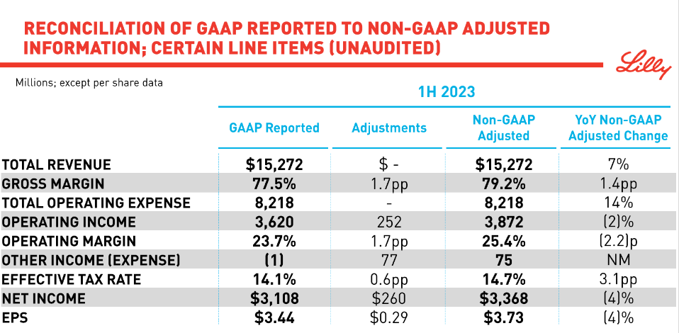 2023年8月8日,礼来发布二季度财报,Q2收入83.12亿美元,同比增长28%,主要是Mounjaro、Verzenio、Jardiance和Taltz的销量驱动的增长,以及Baqsimi的版权销售带来的5.79亿美元。上半年营收152.72亿美元,同比增长7%。