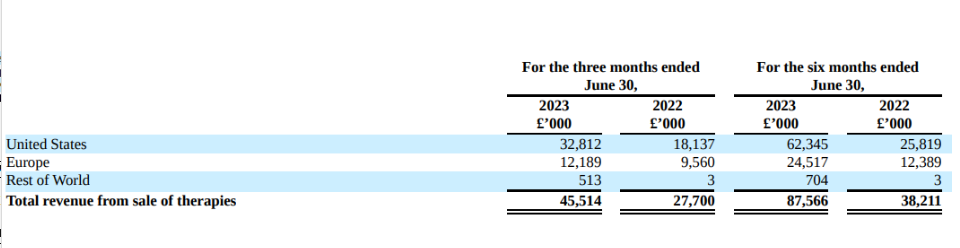 从地区收入来看,Kimmtrak销售额主要归功于欧美市场。2023Q2,美国销售3281万英镑(4170万美元),欧洲销售1219万英镑(1550万美元);2023Q1,美国、欧洲地区销售额分别为2950 万英镑(约3650万美元)、1230万英镑(约1520万美元)。