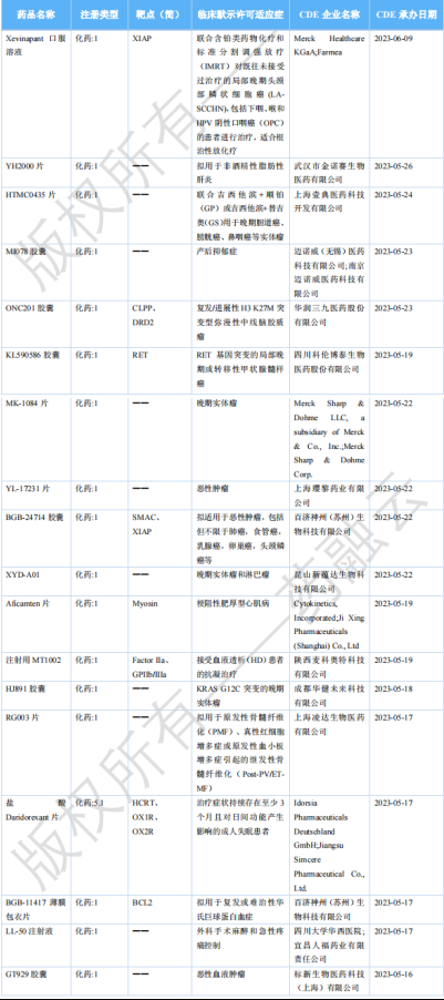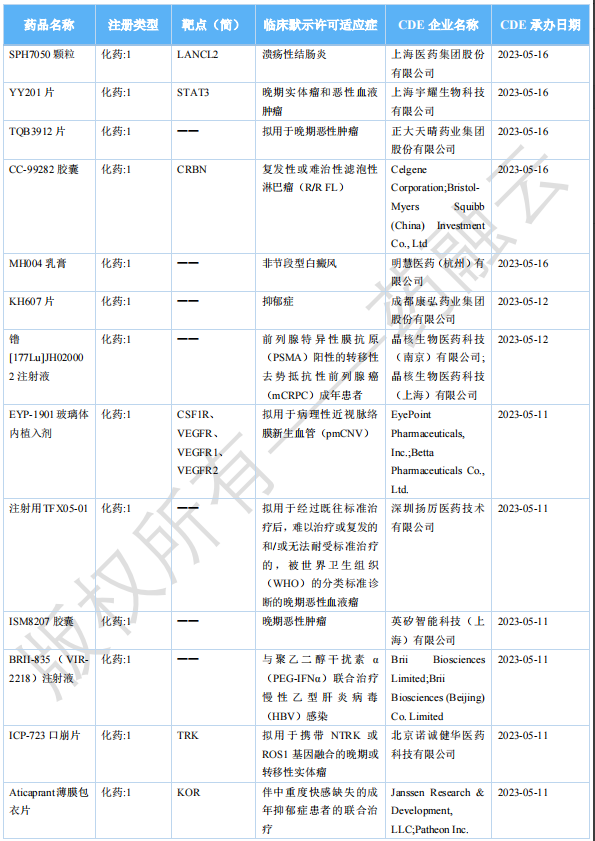 2023年7月国内获批临床新药一览表(部分)